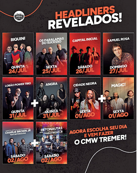 Além da música, o evento oferecerá atrações como tirolesa, roda- gigante, bungee jump e experiências voltadas ao público motociclista. O CMW 2025 também reforça o compromisso com a sustentabilidade, sendo um dos poucos festivais brasileiros certificados como Lixo Zero e neutro em carbono. A expectativa é reunir 800 mil pessoas e mais de 300 mil motos durante os dez dias de programação. Os ingressos já estão disponíveis no site oficial.